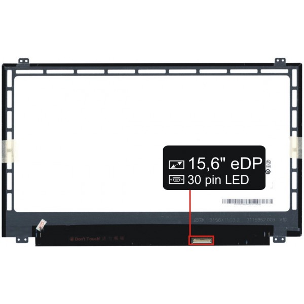 Základní údaje: lesklý povrch, velikost 15,6", rozlišení FULL HD 1920x1080, IPS technologie a 30 pinový LED konektor umístěný na displeji vpravo dole (při pohledu na zadní stranu displeje).