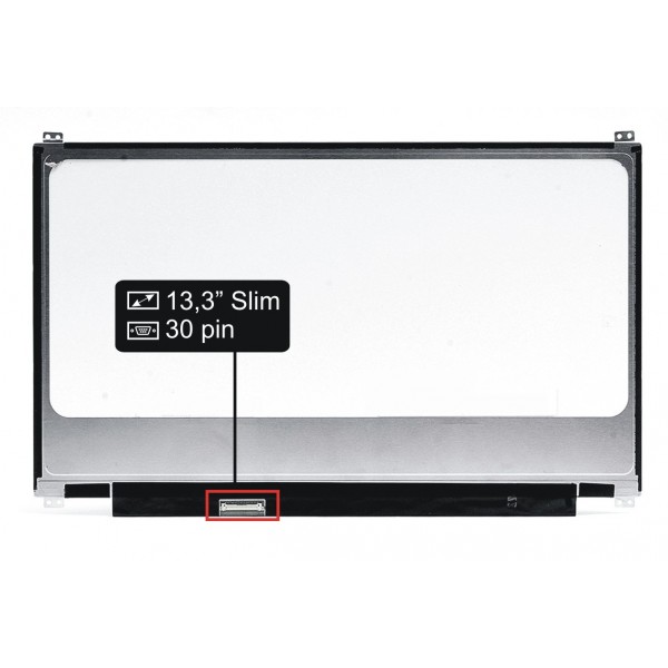 Základní údaje: matný povrch, velikost 13,3", rozlišení FHD 1920x1080, 30 pin eDP LED konektor umístěný na displeji vlevo dole (při pohledu na zadní stranu displeje).