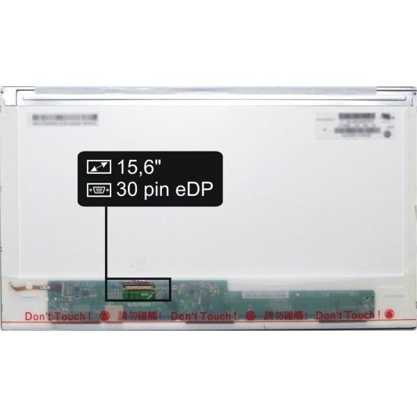 Základní údaje: matný povrch, velikost 15,6", rozlišení HD 1366x768, 30 pinový LED konektor umístěný na displeji vpravo dole (při pohledu na zadní stranu displeje).
